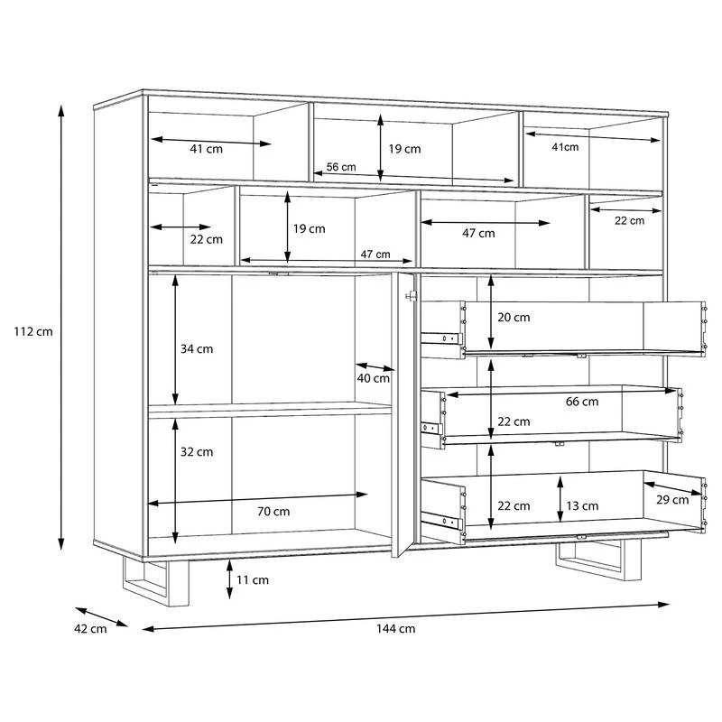 - Compartiments ouverts : 41/56/22/47 x 19 x 40 cm