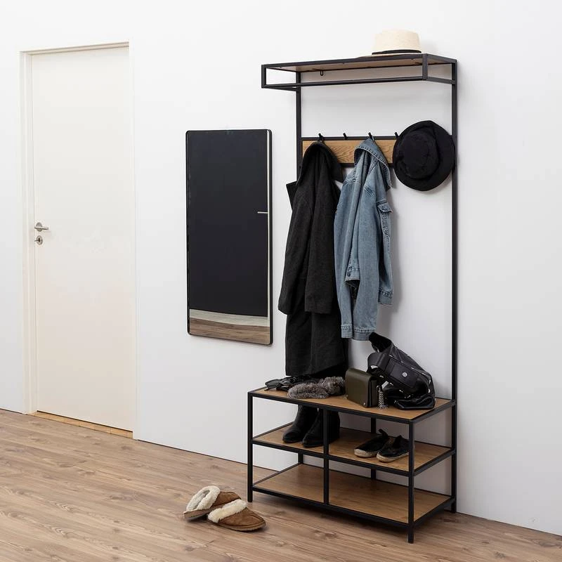 - Porte-manteau et étagère : MDF (panneau de fibres à densité moyenne) plaxé