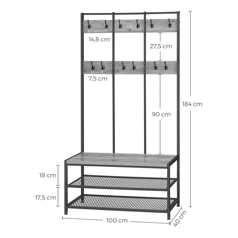 - Structure et crochets à vêtements : noir