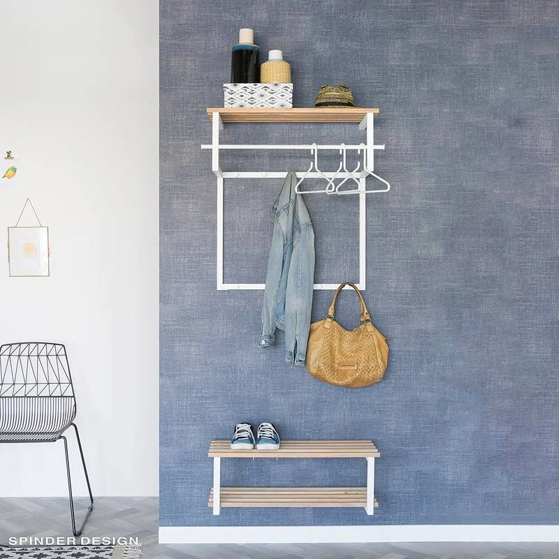 - Étagères : chêne massif huilé