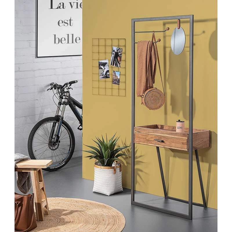 - Tiroir et crochets à vêtements : acacia