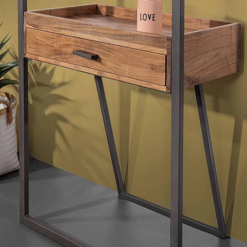 - Tiroir et crochets à vêtements : acacia massif fumé et verni
